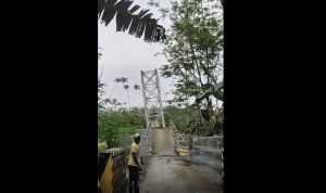 Spjnews.id | PACITAN – Jembatan Gantung di bangun sekitar 3 thn yang lalu, kini hancur di sebabkan terkena banjir bandang bencana alam, lokasi di Desa Wiyoro Kec. Ngadirojo Kab. Pacitan Jawa timur.
