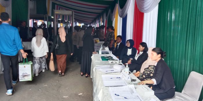 “Maaf pak nametagnya sudah habis, jadi mohon maaf tidak diperkenankan masuk, kepada awak media yang tidak kebagian nametage,” kata panitia pelantikan.