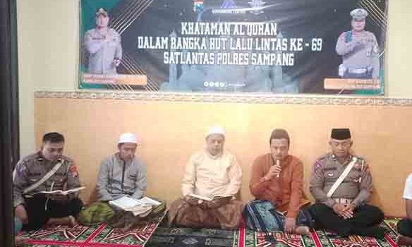 Kasat Lantas menambahkan “Sebagai wujud rasa syukur kepada Allah SWT dimana dalam pengabdian Polantas yang ke-69, Satlantas Polres Sampang melaksanakan Khotaman Alqur’an juga sebagai pembinaan rohani dan meningkatkan keimanan ketaqwaan kepada Allah SWT”.