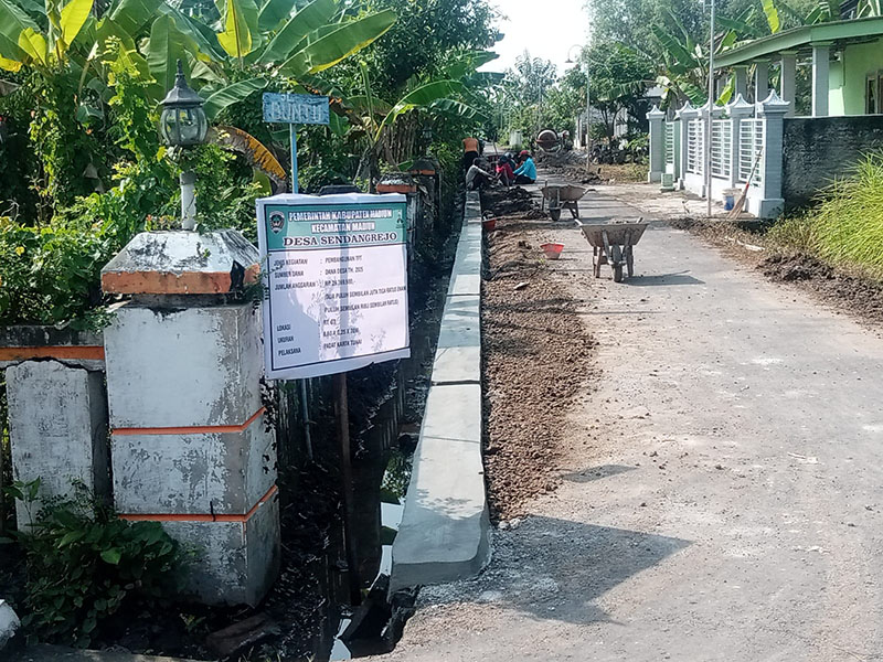 spjnews.id | Madiun – Pemerintah Desa Sendangrejo Kecamatan Madiun Kabupaten Madiun melalui Tim Pelaksana Kegiatan / TPK Desa melaksanakan Pembangunan Tembok Penahan Tanah (TPT) Saluran Irigasi menggunakan Dana Desa. Lokasi Pembangunan berada di RT. 03 dengan volume 0.50 x 0.25 x 70M pembangunan tersebut menggunakan pagu anggaran bersumber dari dana desa Tahun Anggaran 2025 sebesar Rp. 29.369.500,- Selasa, 20/05/2025.