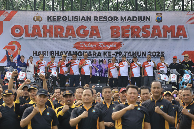 Kapolres Madiun dalam sambutannya menyampaikan bahwa kegiatan ini bukan hanya untuk menjaga kebugaran fisik, tetapi juga sebagai momentum membangun solidaritas dan kekompakan lintas sektoral.