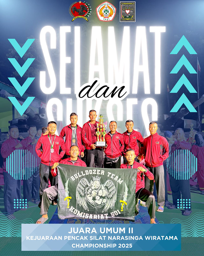 spjnews.id | PASURUAN – Para Pesilat Yonif 501 /Bajra Yudha kembali Menorehkan Prestasi dengan Meraih JUARA UMUM 2 Katagori Dewasa dalam Event Pencak Silat Narasinga Wiratama CHAMPIONSHIP 2025 yang diselenggarakan di Batalyon Kavaleri 8/NSW Pasuruan pada tanggal 8 Agustus 2025.