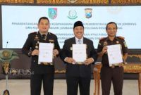 JOMBANG | SPJNews.id – Pemerintah Kabupaten (Pemkab) Jombang bersama Kejaksaan Negeri (Kejari) Jombang dan Kepolisian Resor (Polres) Jombang resmi menandatangani Nota Kesepahaman (MoU) tentang…