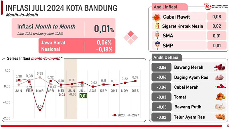 KOTA BANDUNG – Badan Pusat Statistik (BPS) Kota Bandung merilis Perkembangan Indeks Harga Konsumen Kota Bandung Mei 2024. Hasilnya, pada Juli 2024, terjadi inflasi m-to-m…